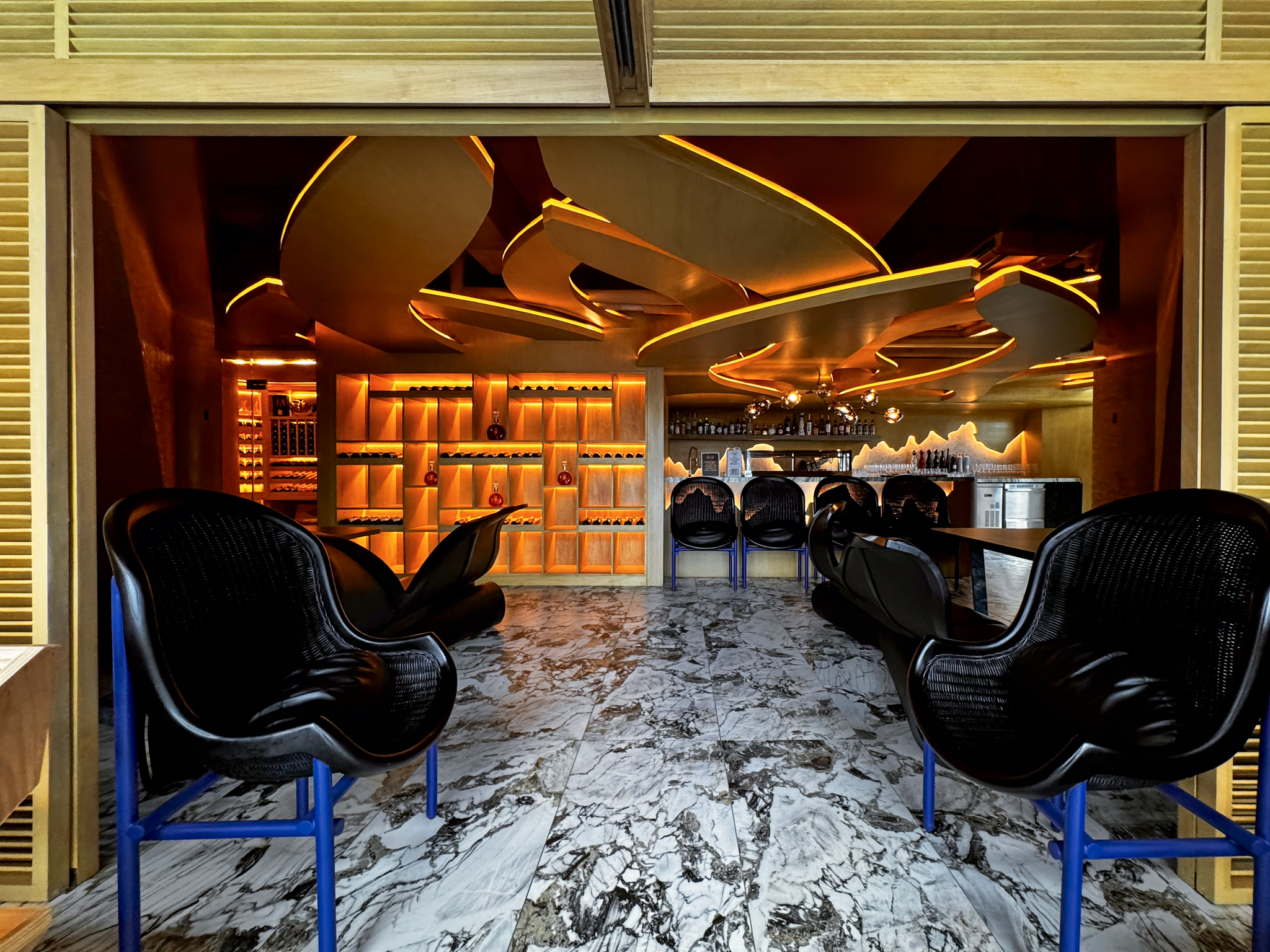 Cloudscape, the largest restaurant in the venue, is a modern and inviting space serving up a premium selection of dry-aged meat, along with high-end bar service. “10 Lyzard-KZ14R ultra-mini line array loudspeakers were chosen to ensure clear audio performance with minimum residual noise, along with six compact Rumble-KU26 subwoofers, creating a small yet extremely powerful bass system”, comments Peñalosa. “Supported by a Kommander-KA28 amplifier, the system provides effortless balance and pristine sound, allowing guests to enjoy the music clearly. The similarly sized Vine and Omakase rooms were also supplied with four Lyzard KZ14Rs and two Rumble KU26s. Their sleek, compact size blends effortlessly with both themes, whilst still providing even coverage. “The venue wanted to enhance the Vine’s vibrant Italian atmosphere with background music, so we also added two ceiling-mounted Lyzard-KZ1 ultra-mini point source loudspeakers. With a peak SPL of 86dB, they offer impressive performance for such a tiny speaker” explains Peñalosa. An easily concealed Truffle-KTR24 subwoofer was also hidden within a shelf, with all products powered by a single Kommander-KA18 amplifier.